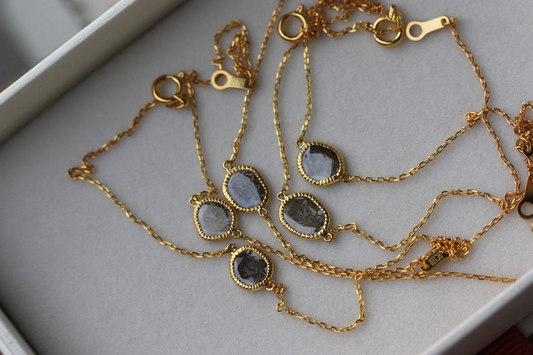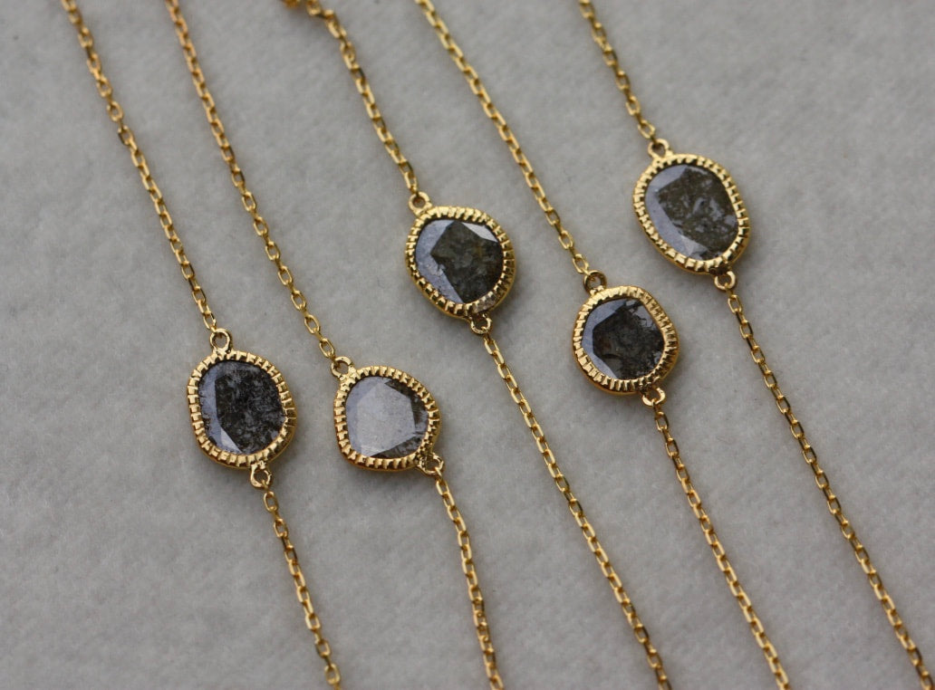 18k Gold and Salt and Pepper Diamond Slice Bracelet, April Birthstone Bracelet