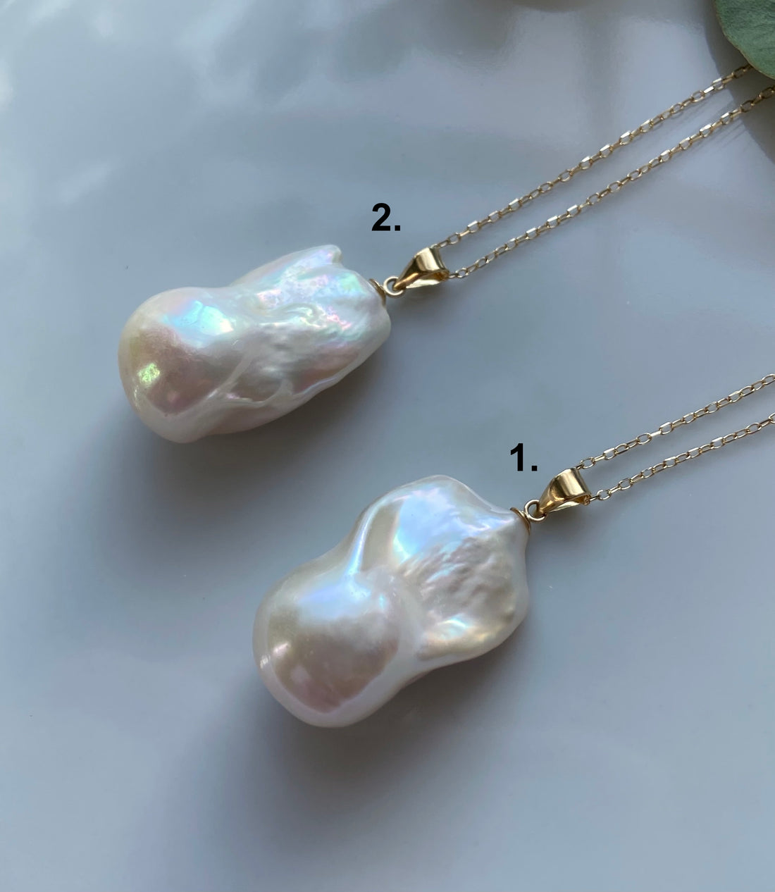 Both pearls are fitted with a solid 9K gold ring and pendant bail. You may choose to purchase the pendant alone, or with a solid 14K gold 18-inch chain as shown. For alternative chain options, please contact us via the chat box or email.