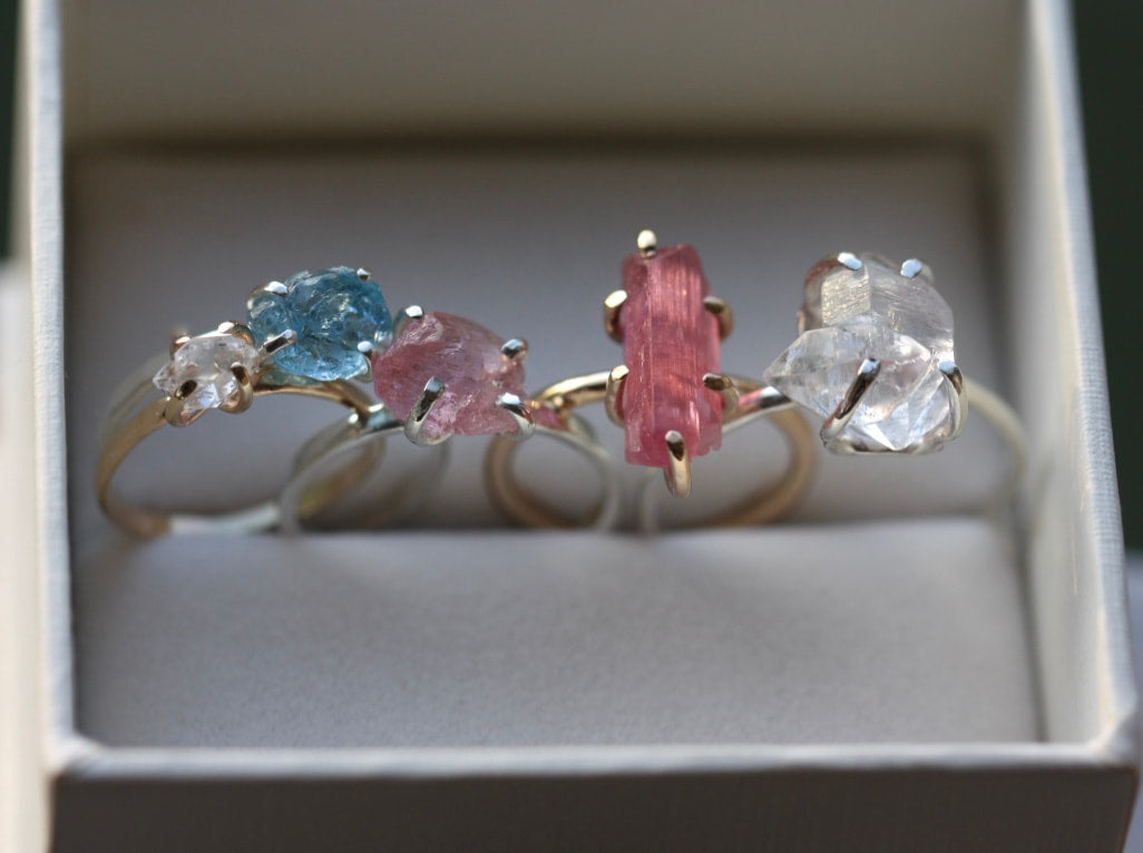 Natural Raw Herkimer Diamond Ring, 14k Gold