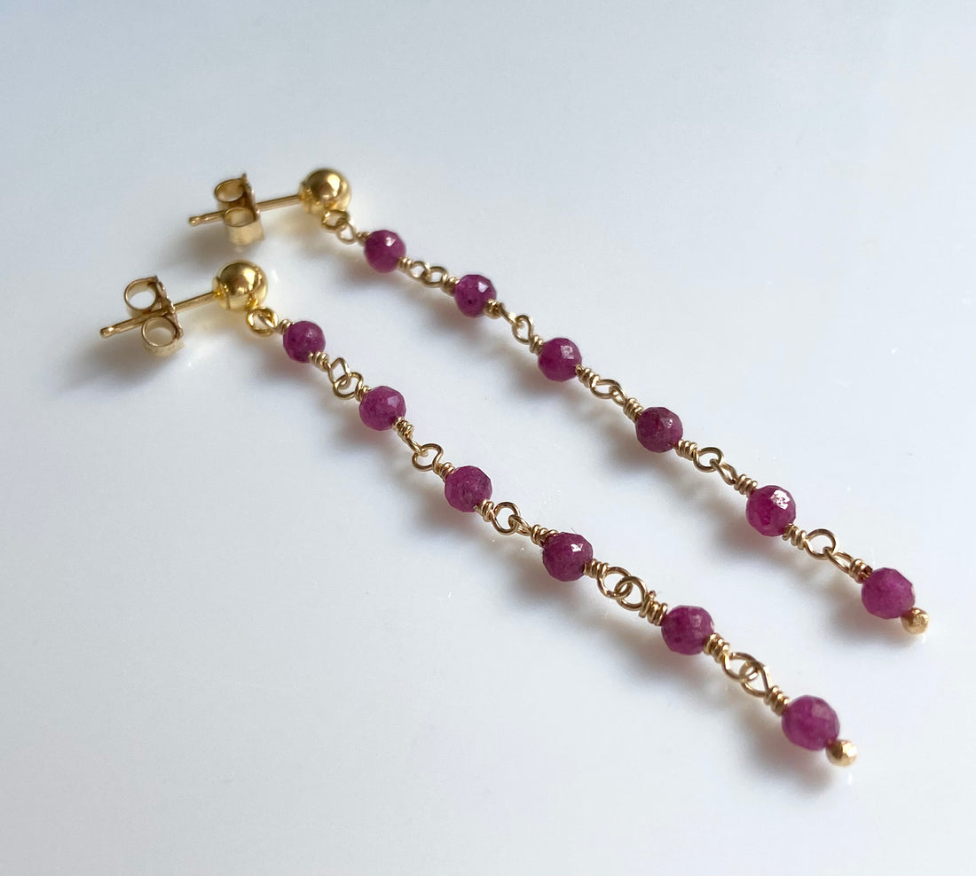 Long 14k gold filled ball post earrings with 6 pcs of faceted Ruby beads.